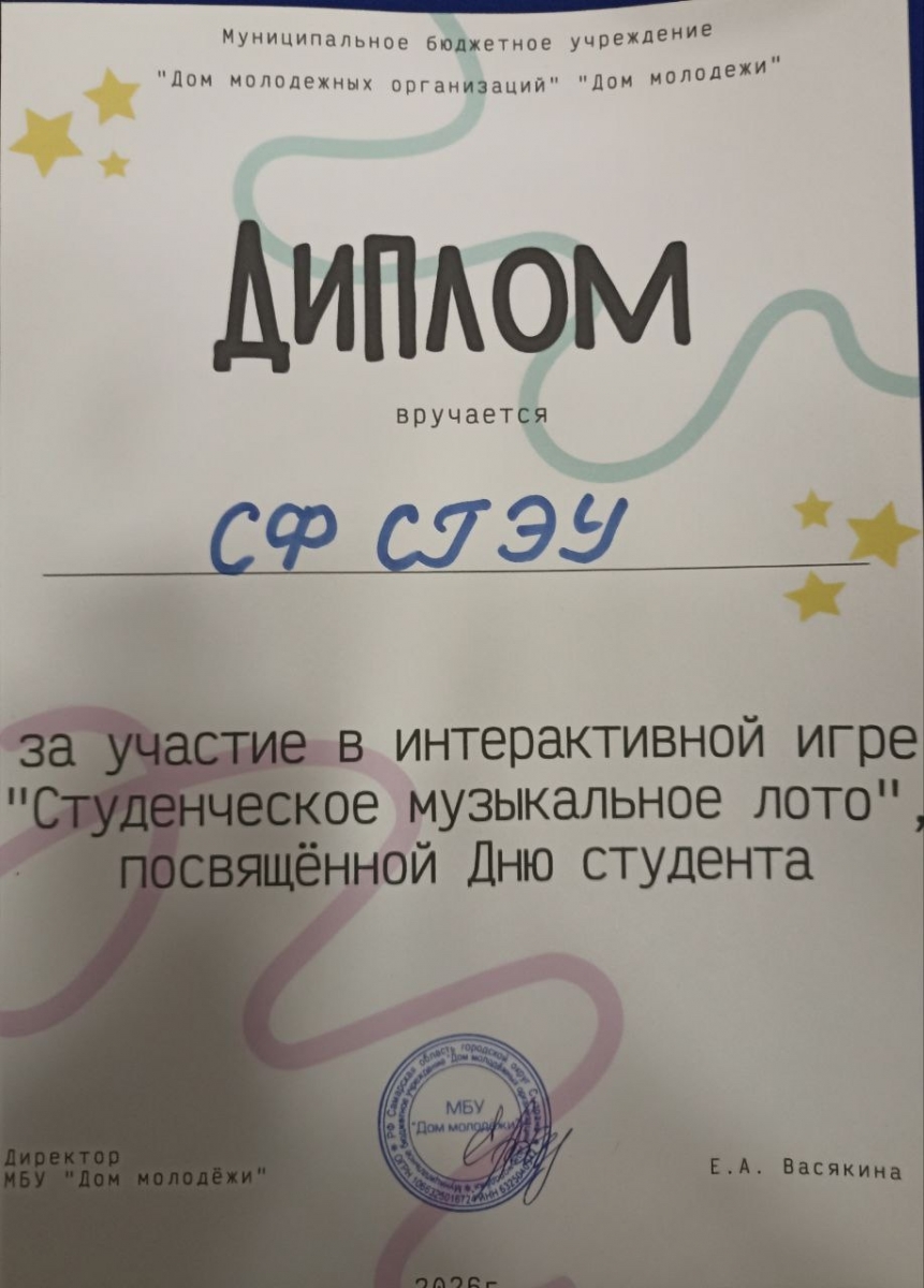 По окончании мероприятия команда Сызранского филиала СГЭУ была награждена дипломом. Поздравляем наших студентов! Так держать!